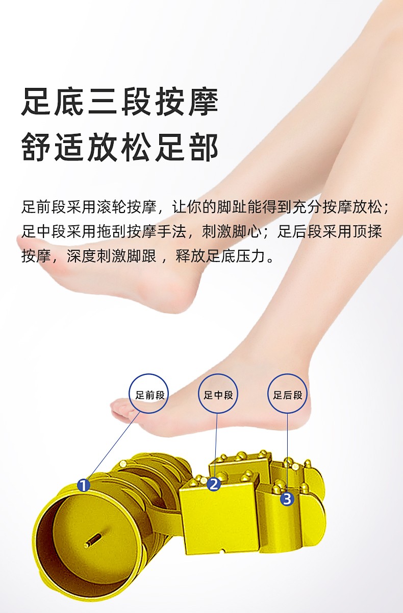 腳底 滾輪按壓(腳趾)、刮痧(腳底)、頂(腳后跟)按摩 (多模式,多強度)