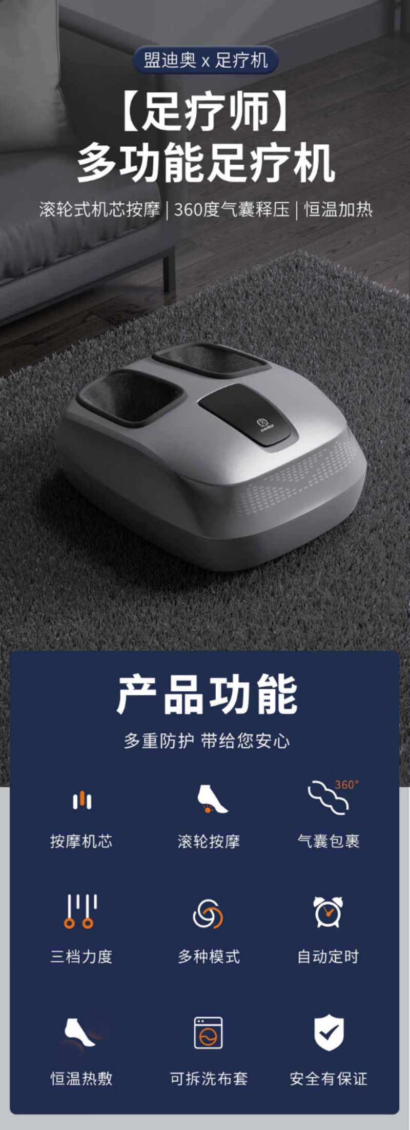 空氣壓縮腳底按摩器腳底按摩機(腳趾),刮擦(鞋底),Shiatus(腳跟)按摩(多模式,多強度)
