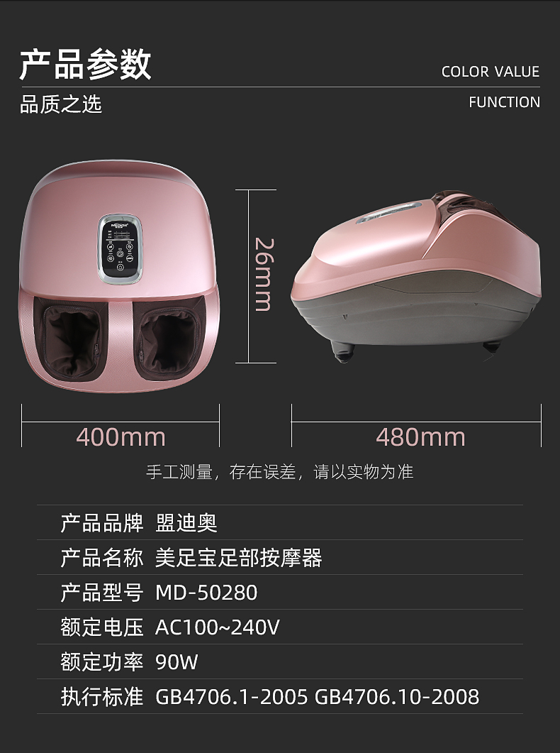 滾輪按壓(腳趾)、刮痧(腳弓)、捶打(腳后跟)按摩 (多模式,多強(qiáng)度);